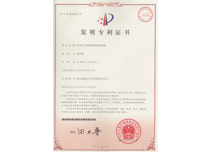 2010年申請2011年授權冷卻管大流量遙控射彈清洗機