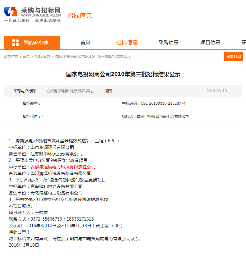 恭喜我公司在國家電投河南公司2016年第三批招標--平頂山發電分公司9臺原煤倉改造項目中,中標。
