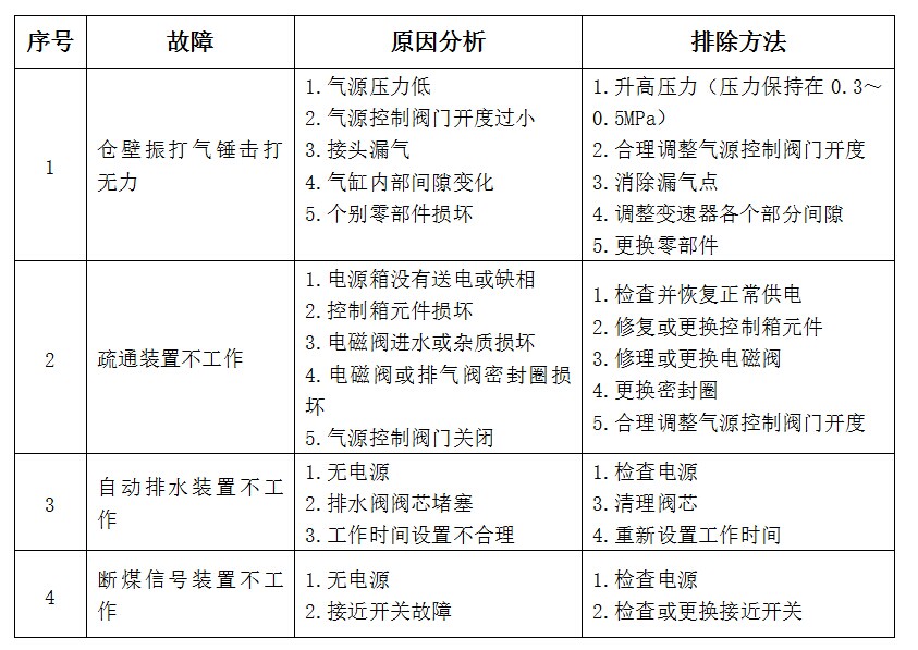 倉(cāng)壁振打氣錘故障分析與排除方法表