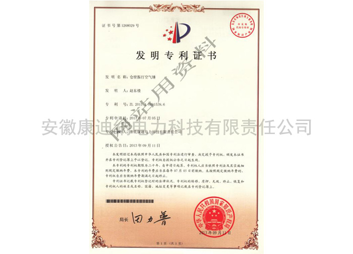 倉(cāng)壁振打空氣錘(發(fā)明專利)