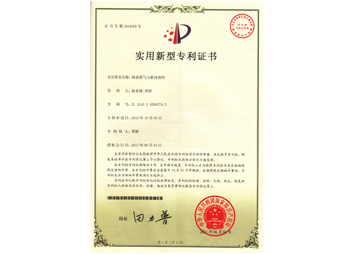 2010年申請2011年授權軸承箱氣力密封油擋