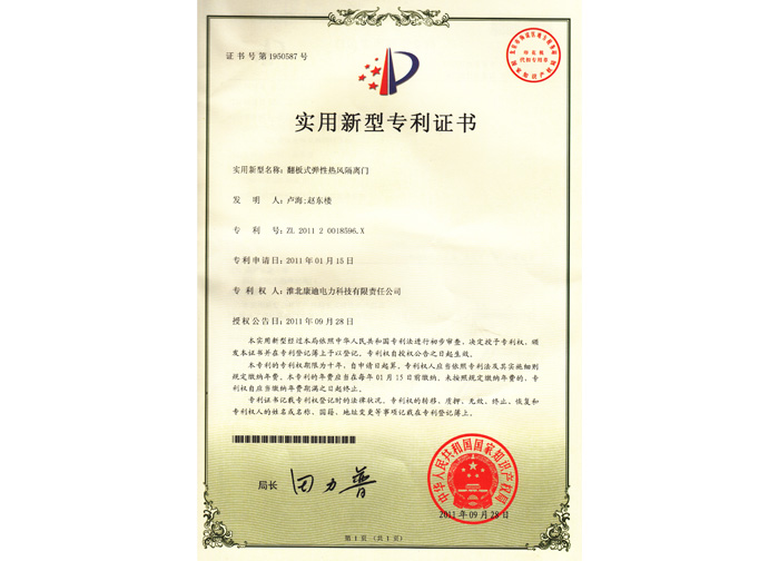 2011年申請2011年授權翻板式彈性熱風隔離門