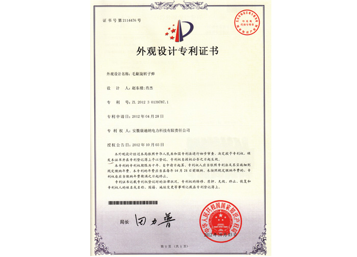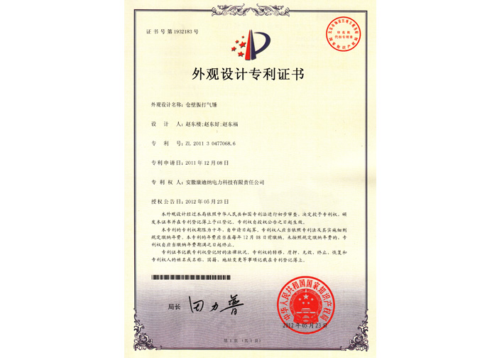 2012倉壁振打氣錘外觀設計專利證書